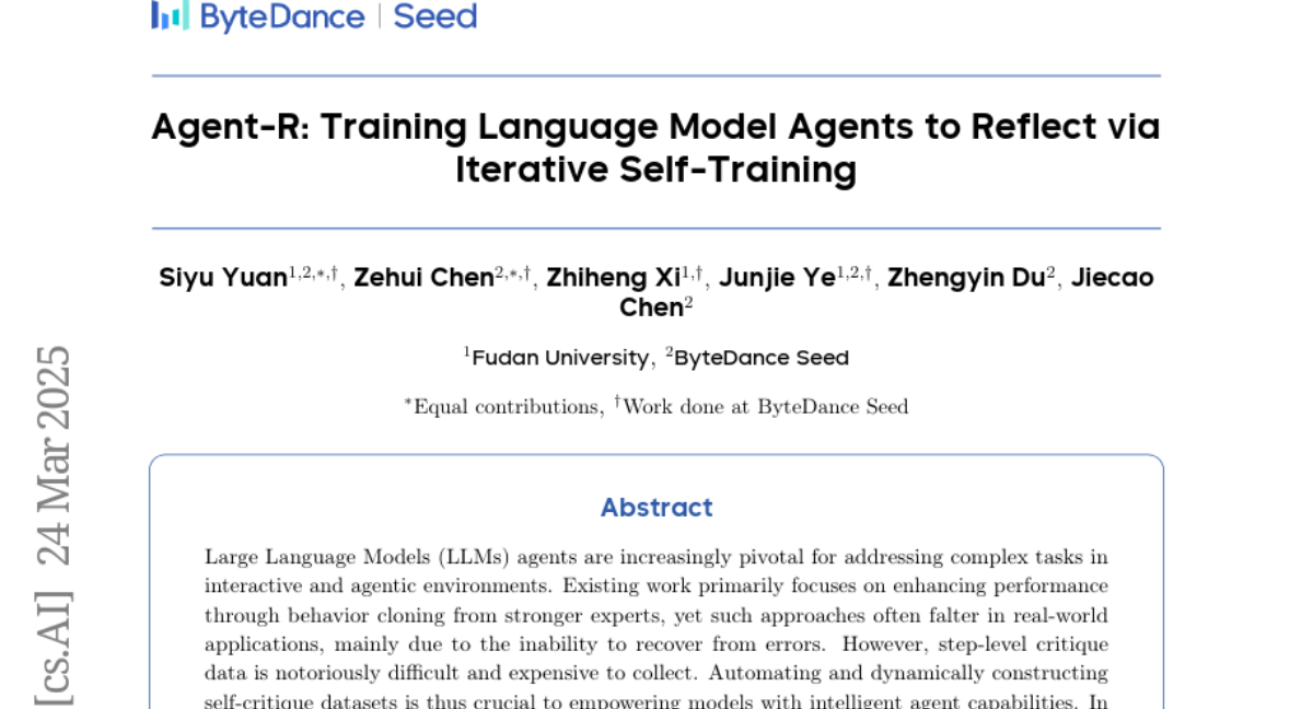 A:Agent-R是由复旦大学和字节跳动团队开发的AI训练框架,它的核心特色是教会AI如何从错误中学习和恢复。传统的AI训练只让AI学习专家的完美示例,就像只背标准答案的学生。而Agent-R让AI学习如何识别错误并及时纠正,就像培养一个能够自我反思和调整的学习者。当AI在执行任务时犯错,Agent-R训练的AI能够及时发现问题并从合适的地方重新开始,而不是一条道走到黑。